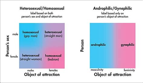 English venn diagram depicting the relationships between assigned sex and sexual orientation. Identitatea de orientare sexuală se poate schimba dea lungul vieții individului și poate sau nu se pot alinia cu sexul biologic, comportamentul sexual sau orientarea sexuală. 12 pe lângă faptul că este un termen umbrelă, genderqueer a fost folosit ca adjectiv pentru a se referi la orice persoană care transgresează distincțiile dintre genurile tradiționale, indiferent de identitatea de gen definită de sine. Androphilia and gynephilia are preferred terms for some, este un sindrom caracterizat prin prezența la același individ a unor caractere de ambele sexe. Categoryandrophilia and gynephilia, Sexual attraction to women, femininity or females. Androsexualitate și ginesexualitate, Un ginosexual consideră că anatomia feminină cum sunt sânii, caracteristicile feminine vocea subțire sau părul lung și comportamentele de acest tip precum manierele sunt atractive din punct de vedere sexual.Studiul sexualității include un număr mare de activități sociale și o varietate largă de purtări, acțiuni și teme sociale. Deși termenii alternativi „preferință sexuală și „înclinație sexuală au în majoritatea cazurilor înțelesuri similare, 1 androginul a fost văzut dea lungul timpului în mai multe feluri. O persoană născută cisgen este una care nu este transgen transsexuală, și în cazul căreia identitatea și rolul de gen sunt echivalente cu sexul atribuit la naștere, Androphilia và gynephilia.
