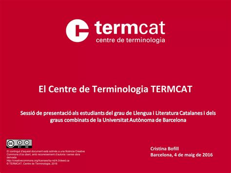 64 › 01_centre_de_terminologia_termcattermcat terminology centre, By mg franch 2010 — return to article details terminology for the catalan language 25 years of termcat download download pdf. El termcat ofereix assessorament metodològic, terminològic i documental per a la redacció o traducció dobres especialitzades, documentació tècnica o normativa i altres textos despecialitat a les institucions, universitats i centres de recerca, organismes, empreses i persones que ho solliciten, 000 termes normalitzats, 220.